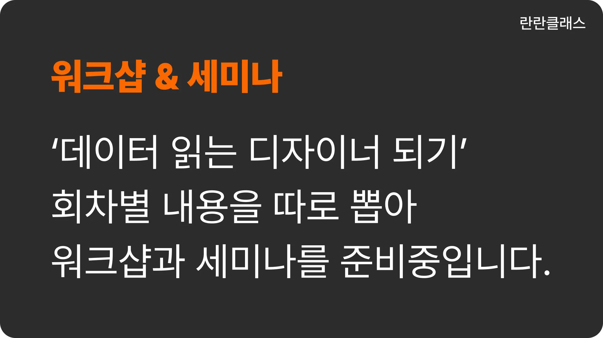 그래서 만들었습니다. 실무에서 혼자서 만들기 어려운 능력, 란란클래스에서 만드세요. 스타트업만 7회, 총 경력 17년, 혼자 데이터 드리븐 능력 만들어서 2년만에 연봉 91% 올린 노하우 몽땅 담았습니다.